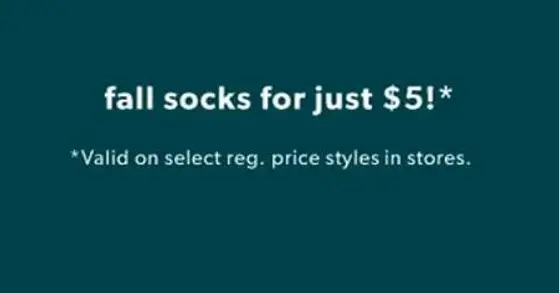 Get it quick! Shop in store and get fall socks now for only $5.
