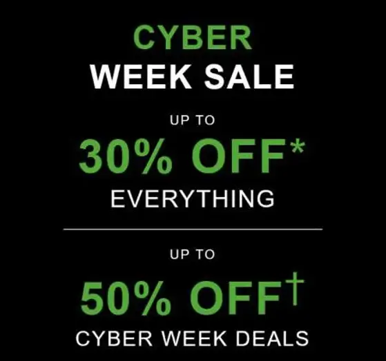 Shop in store and get up to 30% off everything and up to 50% off Cyber Week deals.