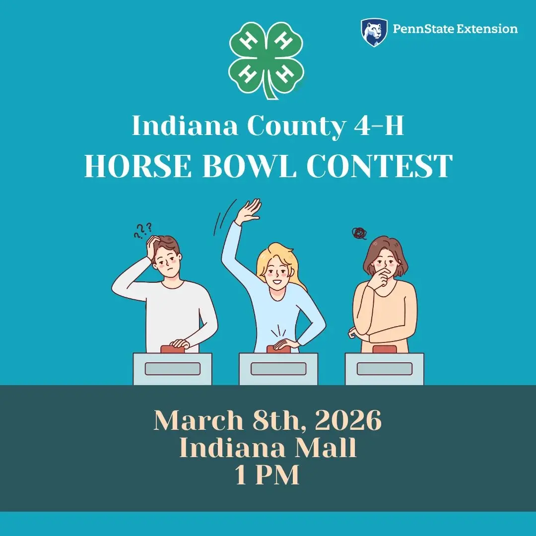 Join the local 4-H youth group for their exciting Horse Bowl competition at Indiana Mall. This fun and interactive contest challenges 4-H studentsā knowledge and teamwork in a lively, quiz-style format.