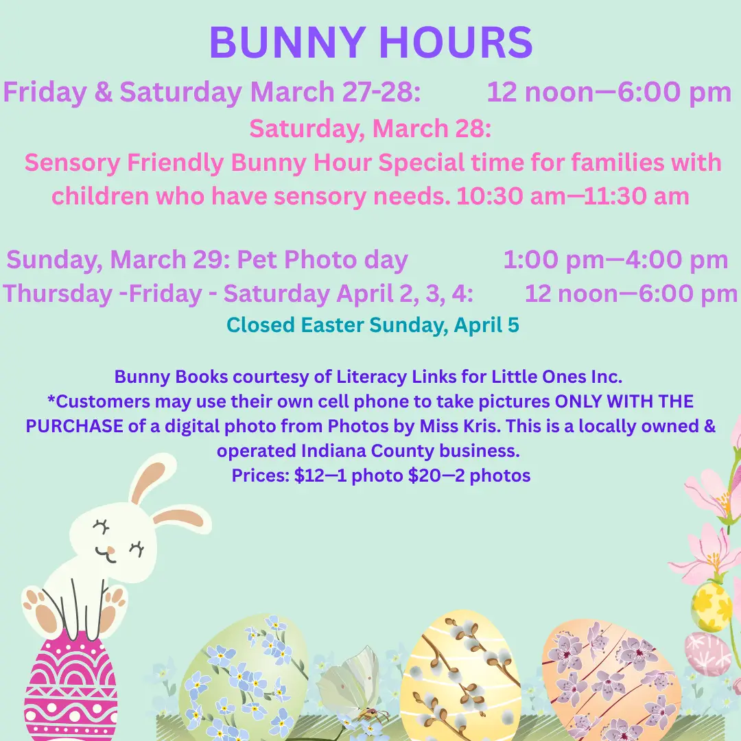Hop on over and visit the Easter Bunny at Indiana Mall! Bring the whole family to enjoy this springtime tradition and capture a memorable photo.
